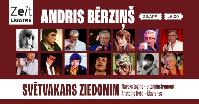25. aprīlī plkst. 16.00 radošais kvartāls "Zeit" ielūdz uz brīvmākslinieka Andra Bērziņa koncertu “Svētvakars”. Joprojām ar Ziedoni sirdī, dvēselē un galvā, Andris vēlas apliecināt savu cieņu un nepārejošu mīlestību uz ģēnija Raimonda Paula un Jāņa Petera, Imanta Ziedoņa, Imanta Kalniņa daiļradi.