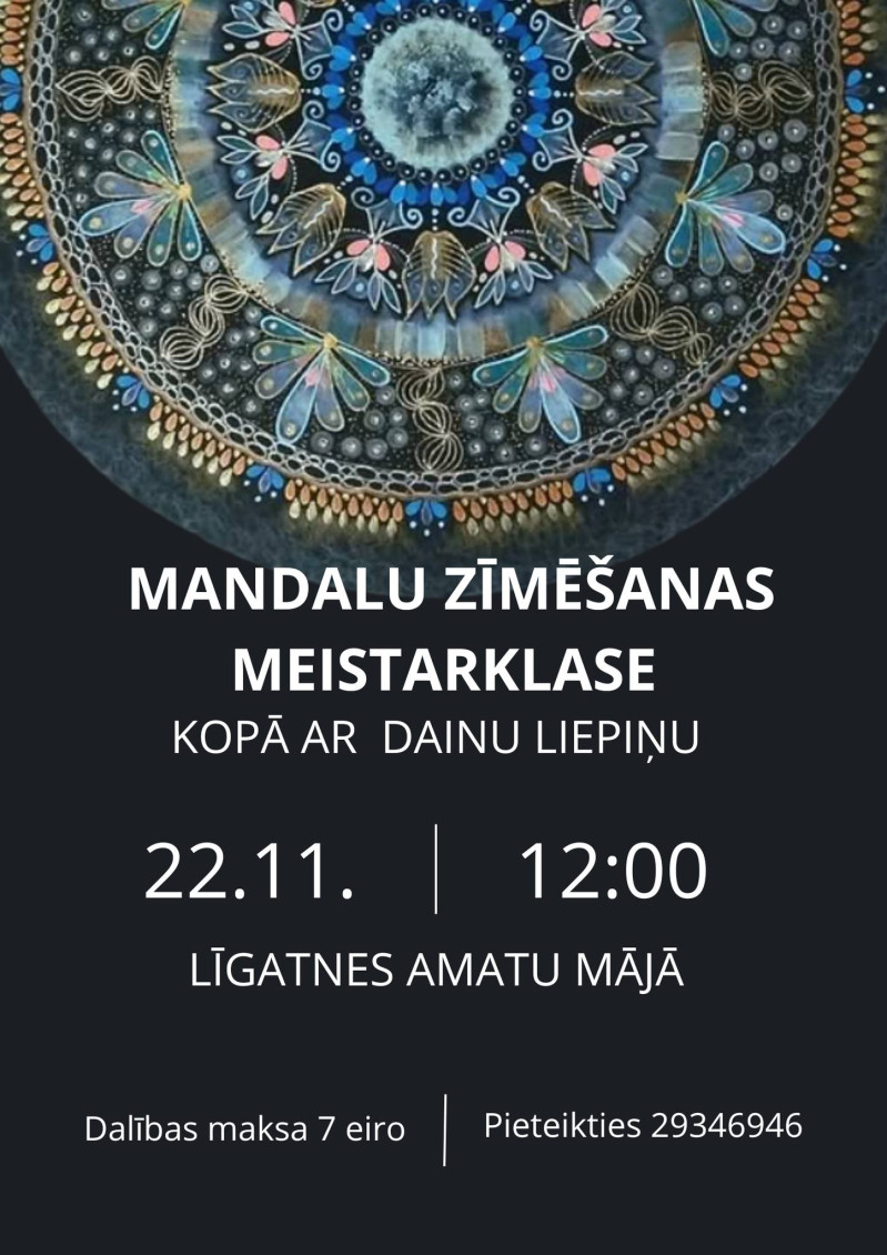 Mandalu zīmēšanas meistarklase būs iespēja apstāties, saklausīt sevi un ļaut krāsām brīvi plūst - veidojot harmoniju, līdzsvaru un iekšēju mieru uz papīra. Nav nepieciešamas priekšzināšanas - tikai vēlme radīt un baudīt procesu.
