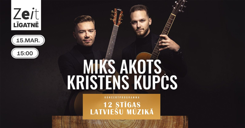 15. martā plkst. 15.00 radošais kvartāls "Zeit" aicina uz īpašu koncertu – ģitāristu Mika Akota un Kristena Kupča dueta programmu “12 STĪGAS LATVIEŠU MŪZIKĀ”, kas veltīta skaistākajām latviešu melodijām.