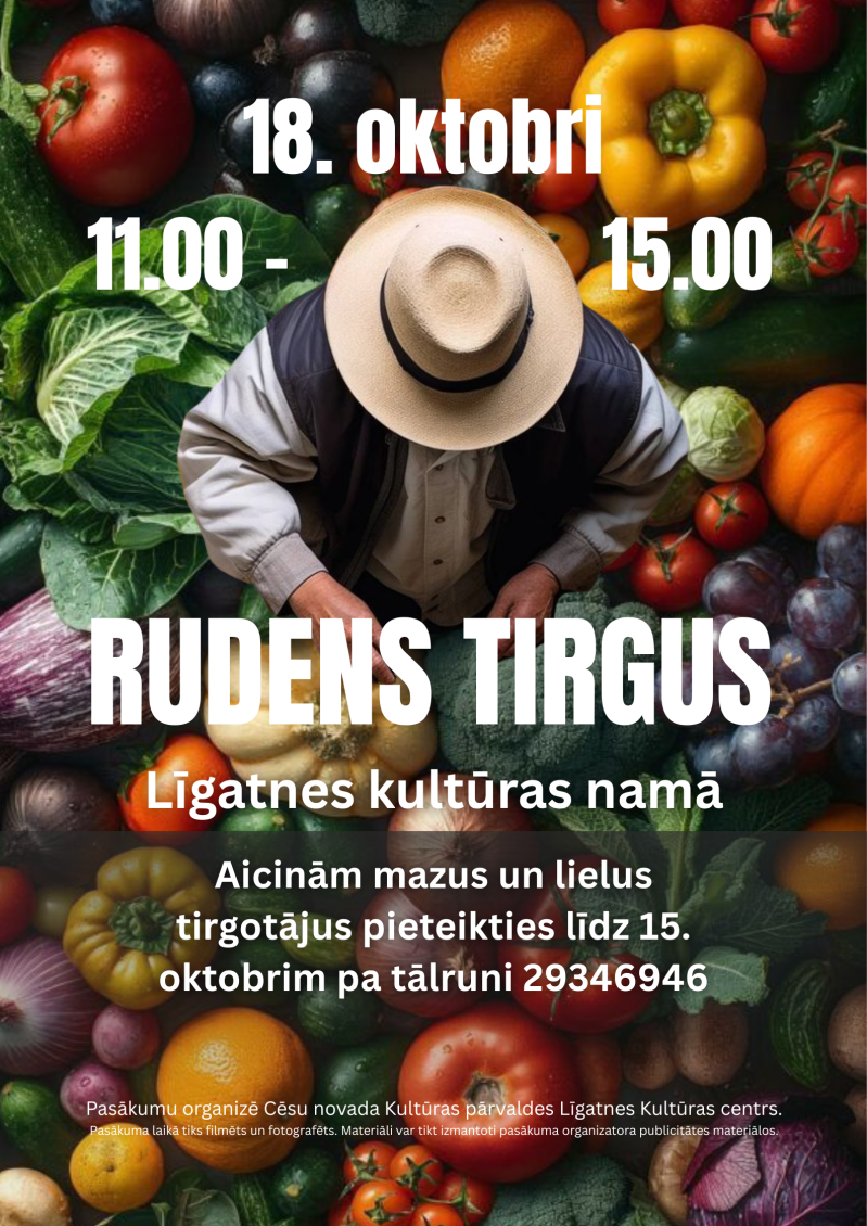 Sestdien, 18. oktobrī, no plkst. 11.00 līdz 15.00 Līgatnes Kultūras namā notiks Rudens tirgus!