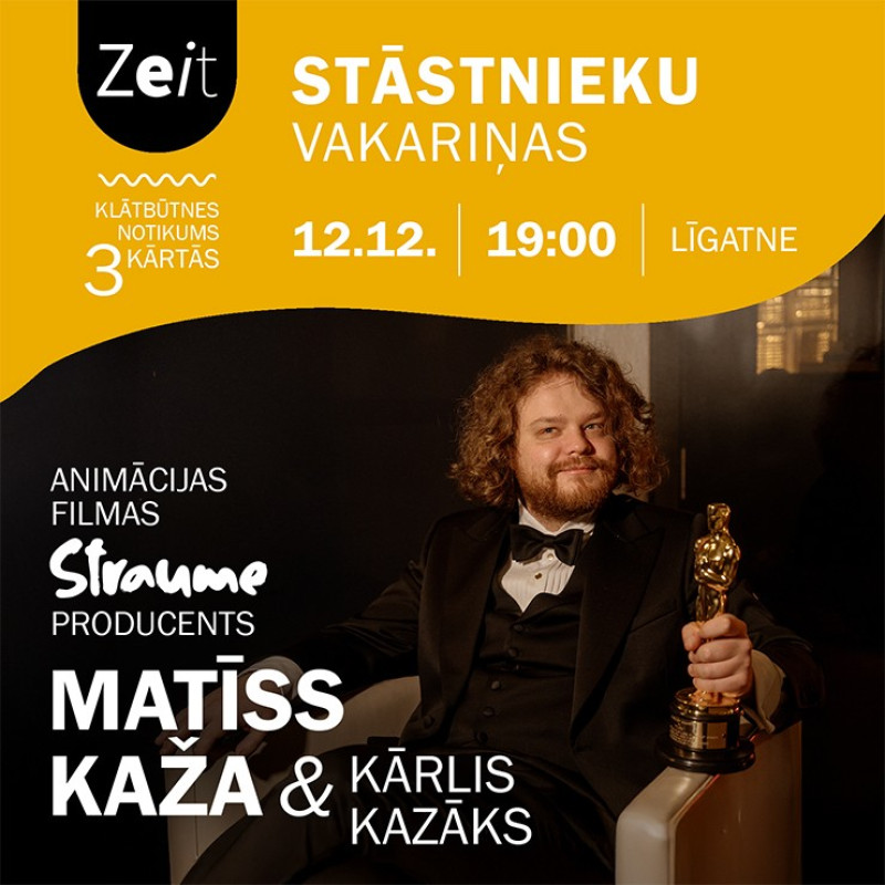 Vakara īpašais viesis būs animācijas filmas “Straume” producents Matīss Kaža. Par animācijas kino, dzīvi pirms un pēc “Straumes”, par stāstiem, kas iedvesmo – ar viņu sarunāsies pieredzējušais stāstnieks Kārlis Kazāks
