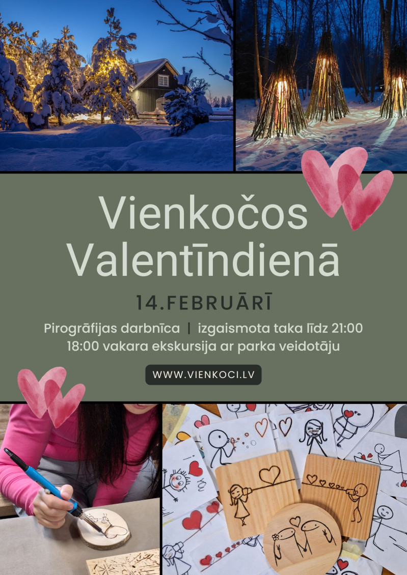 Sestdien, 14. februārī, Vienkoču parks aicina pavadīt Valentīndienu mierpilnā dabas atmosfērā, kur romantika satiekas ar amatniecību, gaismu un stāstiem. Tā ir lieliska iespēja baudīt kopā būšanu – gan pāriem, gan ģimenēm, gan ikvienam, kurš vēlas īpašu vakaru dabā.