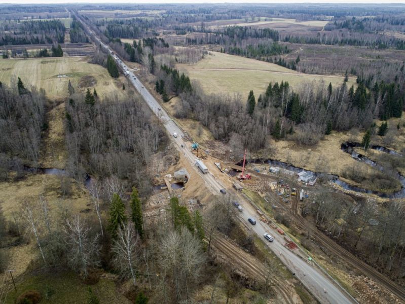 Uz Vidzemes šosejas (A2) Augšlīgatnē turpinās Līgatnes upes caurtekas (64,8. km) atjaunošanas darbi. Foto: Renārs Koris.