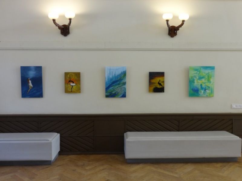 Ievas Krivmas gleznu izstādes "Sirdsbalsij sekojot" atklāšana 2018. gada 14. aprīlī. Agutes Klints foto.