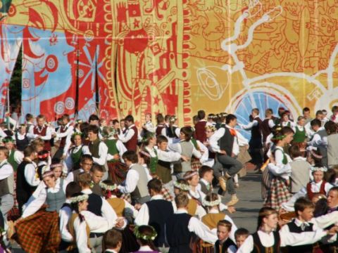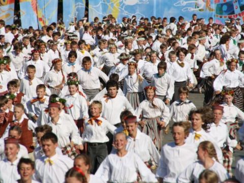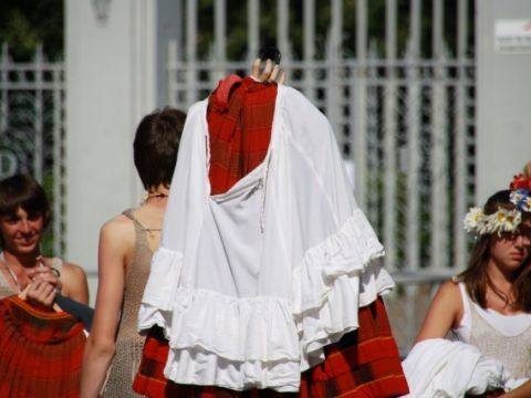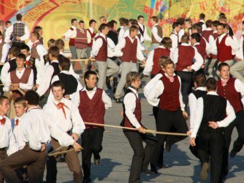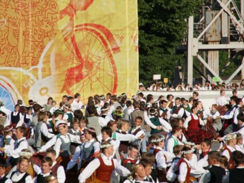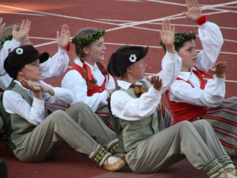 "Deja kāpj debesīs", ģenerālmēģinājums Rīgā Daugavas stadionā un mūsu Līgatnes novada vidusskolas dejotāji, 10.07.2010., foto Anita Jaunzeme