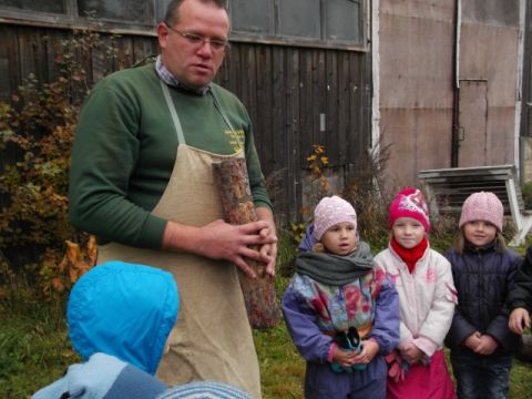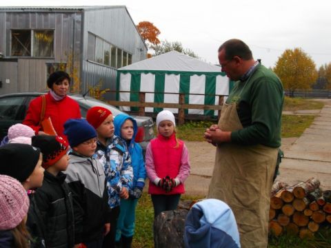 "Pūcēni" no Līgatnes bērnudārza viesojas "Karošu darbnīcā", 10.10.2013. Foto Silvija Rijniece.