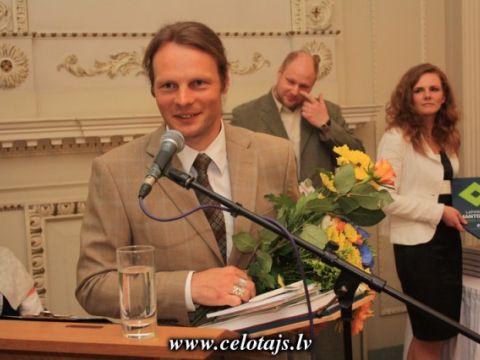 Rihards Vidzickis - "Vienkoču parks", saņem kultūras zīmi „Latviskais mantojums”, Rīgā, Latviešu Biedrības namā, 10.05.2013., foto LLTA "Lauku ceļotājs"