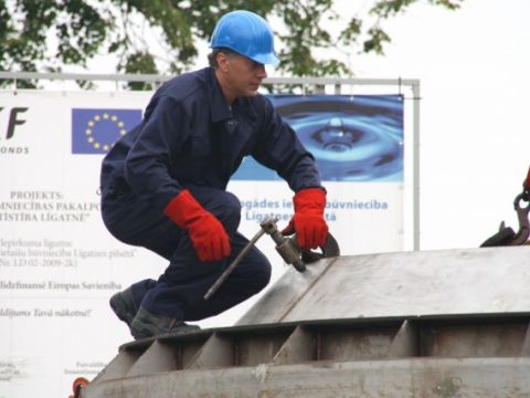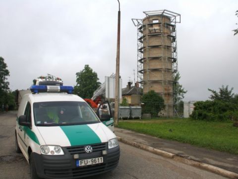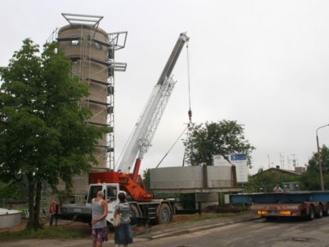 Ūdenstorņa tvertne, kura būs 12 m augsta, ir atvesta 24.07.2010. pēc plkst. 7.30, foto Anita Jaunzeme