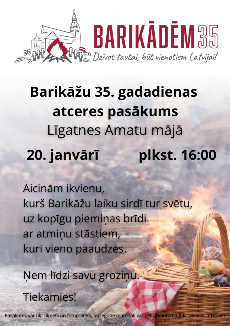 Atceroties un godinot 1991. gada janvāra barikāžu laika notikumus, 20. janvārī plkst. 16.00 aicinām ikvienu, kuram šis laiks ir sirdī svēts, uz kopīgu piemiņas brīdi un atmiņu stāstiem Līgatnes Amatu mājā.