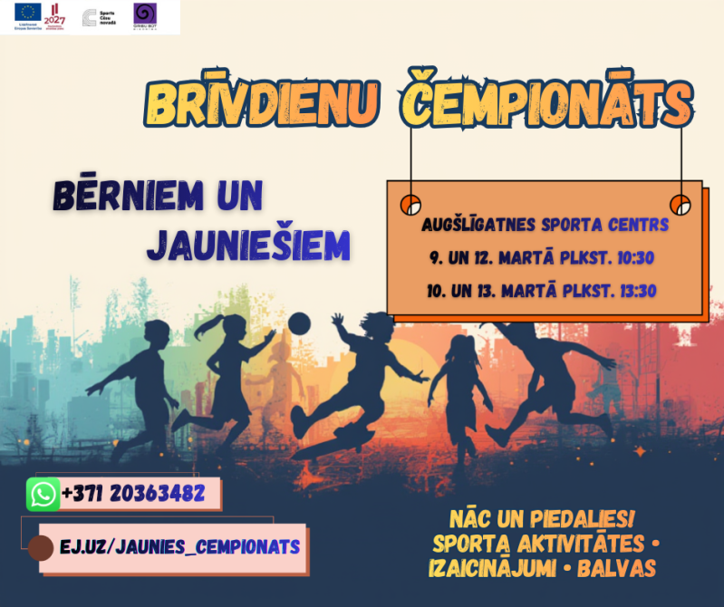 Aicinām jautri pavadīt laiku pavasara brīvlaikā - būs dažādas interesantas aktivitātes, spēles, stafetes un čempionāts ar balvām.