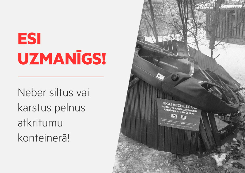 Aicinām domāt par drošību kopā un nekādā gadījumā neizmest siltus vai karstus pelnus sadzīves atkritumu konteineros!
