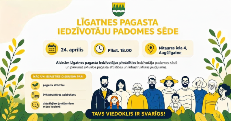Aicinām Līgatnes pagasta iedzīvotājus piedalīties iedzīvotāju padomes sēdē un pārrunāt aktuālos pagasta attīstības un infrastruktūras jautājumus.
