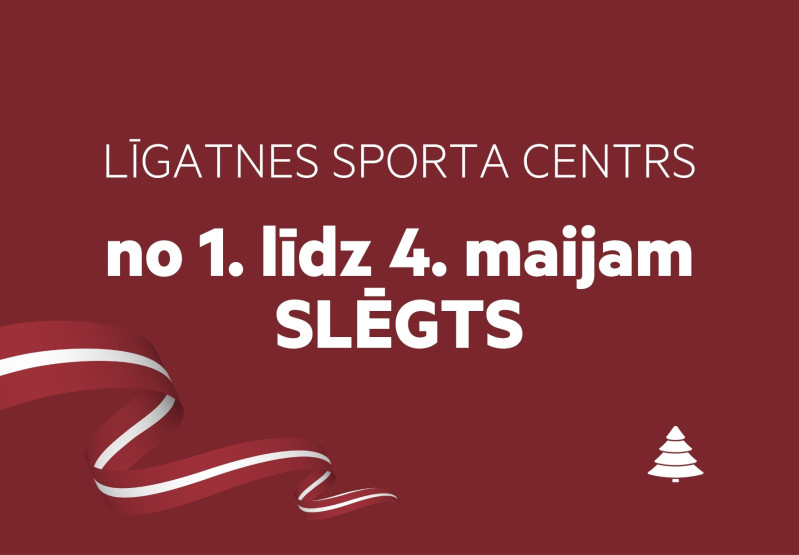 Informējam, ka Līgatnes Sporta centrs svētku brīvdienās, no 1. līdz 4. maijam, būs slēgts apmeklētājiem.