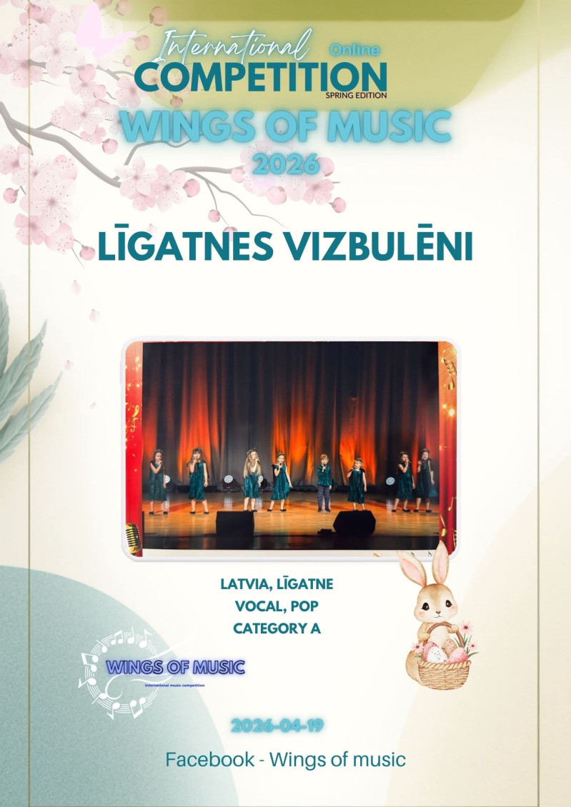 Līgatnes mazie dziedātāji – vokālā grupa “Līgatnes Vizbulēni” – ar lielu prieku un lepnumu piedalījās starptautiskajā attālinātajā jauno izpildītāju konkursā “Wings of music 2026”.