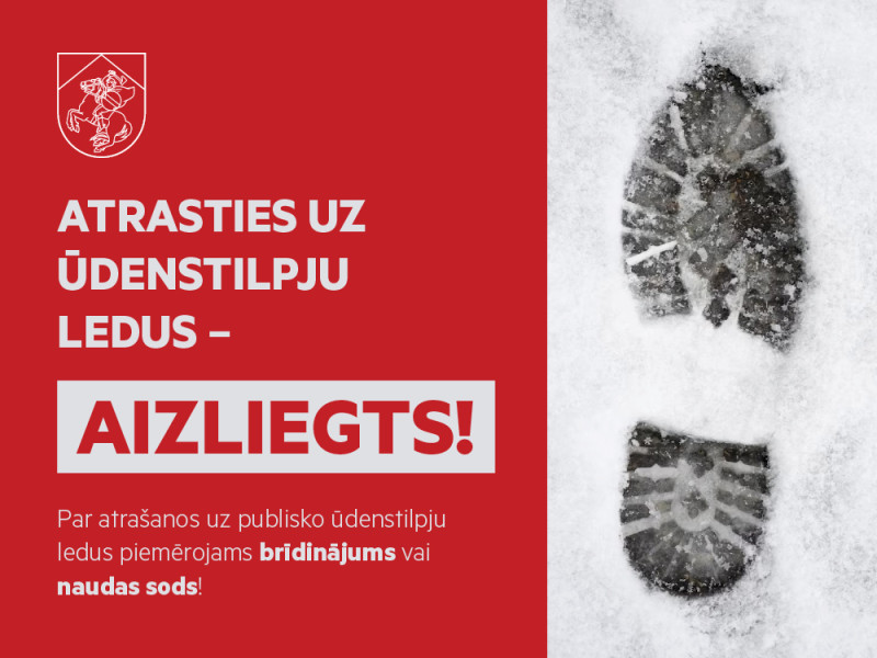 Aicinām ikvienu izvērtēt riskus un ziemas aktivitātēs uz ūdenstilpnēm iesaistīties tikai drošos apstākļos.