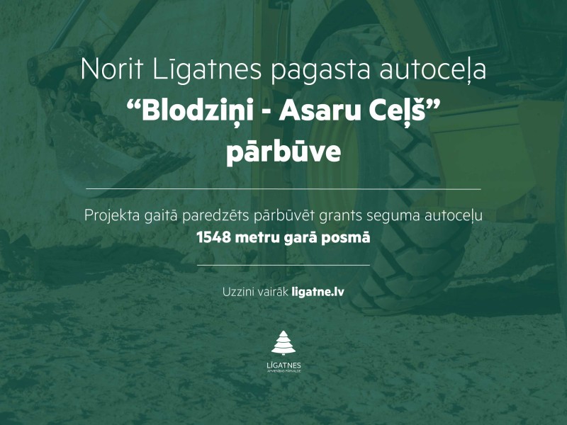 Norit Līgatnes pagastā esošā pašvaldības autoceļa “Blodziņi (Vaisuļi) - Asaru Ceļš” pārbūve. Projekta gaitā paredzēts pārbūvēt grants seguma autoceļu 1548 metru garā posmā.