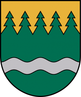 Apraksts: Ģerboņa vairoga augšdaļa ir zelta krāsā, bet apakšējā daļa zaļā krāsā. Abas daļas atdala dekoratīvi stilizēti pieci zaļi egļu silueti, kas ir atsauce uz pilsētas apkārtni, kur ir daudz egļu meži. Apakšdaļā uz zaļā fona attēlota viļņota sudraba josla, kas simbolizē Gauju.